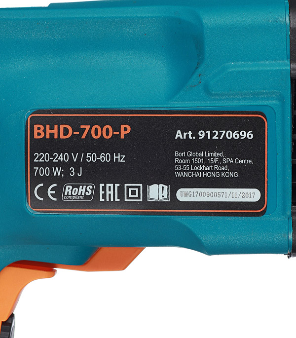 Перфоратор электрический Bort BHD-700-P (91272539) 700 Вт 3 Дж SDS-plus