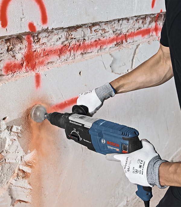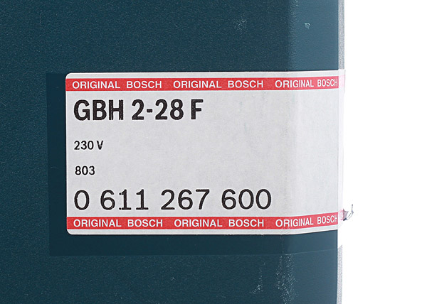 GBH 2 – категория легких перфораторов, 28 – максимальный диаметр сверления в бетоне, F – сменный сверлильный патрон.