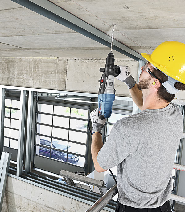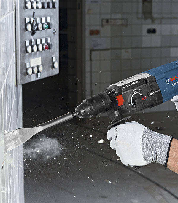 Предназначен для сверления, сверления с ударом и долбления (три режима) в таких материалах как бетон, природный камень, дерево, металл. Имеет электронную регулировку числа оборотов двигателя, предохранительную муфту, блокировку вращения для долбления, реверс.