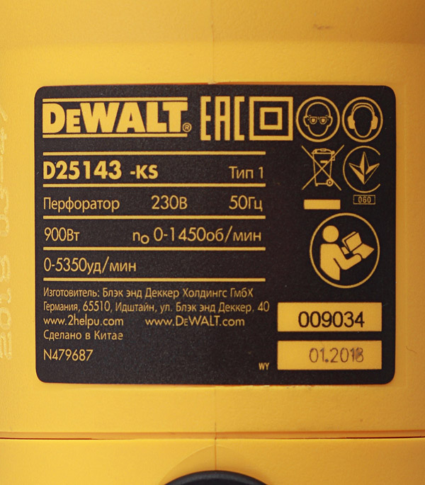 Перфоратор электрический DeWalt D25143K 900 Вт 3,2 Дж SDS-plus