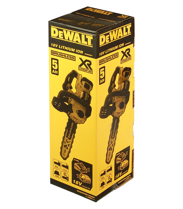 Пила цепная аккумуляторная DeWalt DCM565P1-QW XR 12шаг 3/8паз 1,1 мм 45 звеньев Li-Ion 18В 5Ач