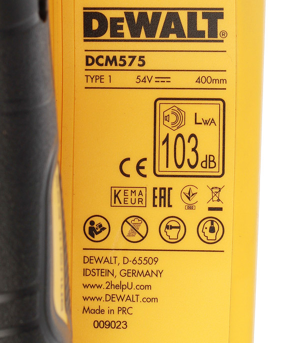Пила цепная аккумуляторная DeWalt DCM575X1-QW 16шаг 3/8паз 1,1 мм 56 звеньев Li-Ion 54В 3Ач