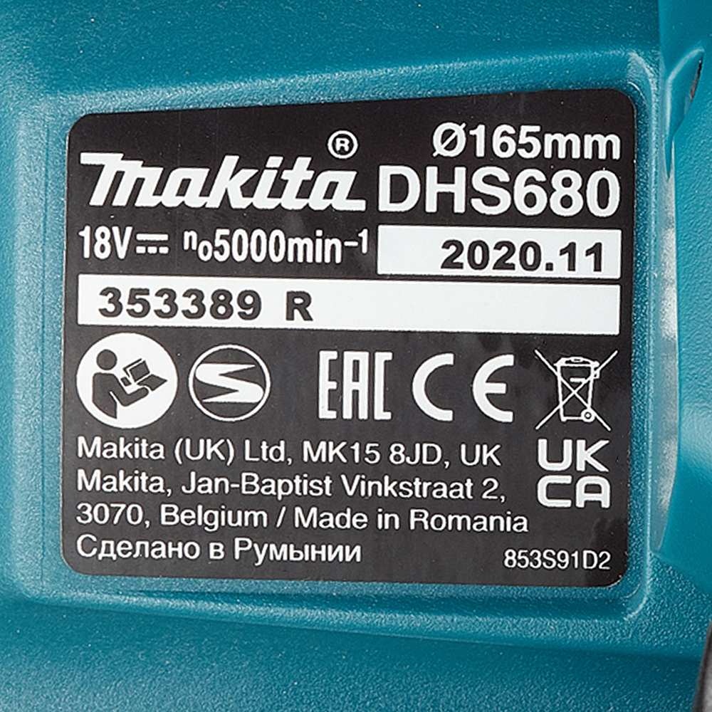 Пила дисковая аккумуляторная Makita DHS680Z 18В Li-Ion 165 мм без АКБ и ЗУ
