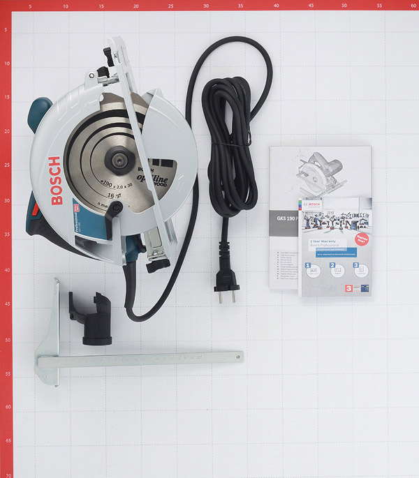 пила, твердосплавный пильный диск, d 190 мм, шестигранный торцовый ключ, параллельный упор, переходник пылеотвода.