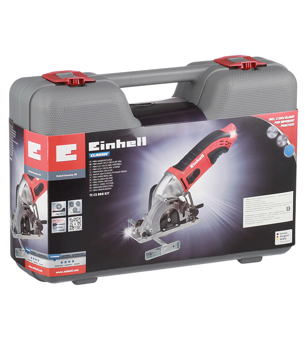 Дисковая мини-пила Einhell TC-CS 860 Kit вместе с упором и линейной разметкой позволяет точно и быстро раскраивать заготовки без предварительного расчерчивания. В зависимости от выбранной оснастки инструмент используется для резания таких материалов, как дерево, пластик и керамика.