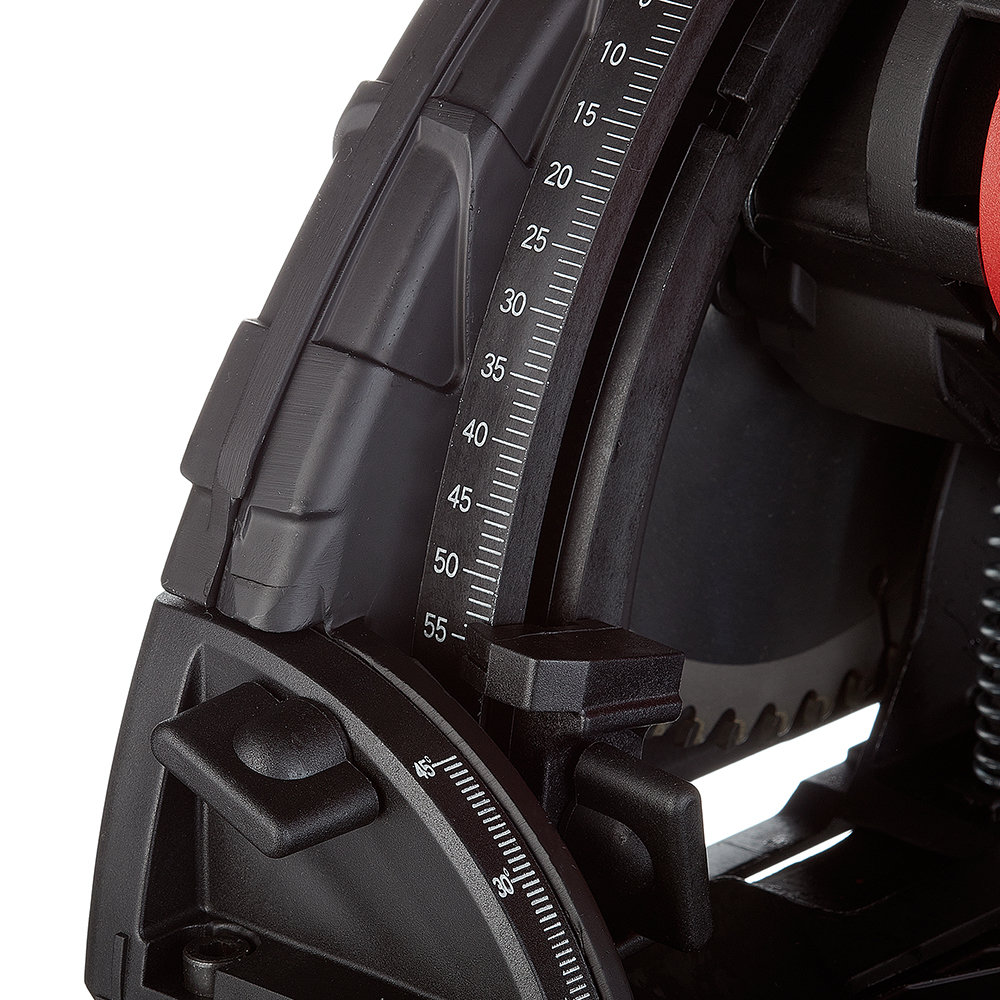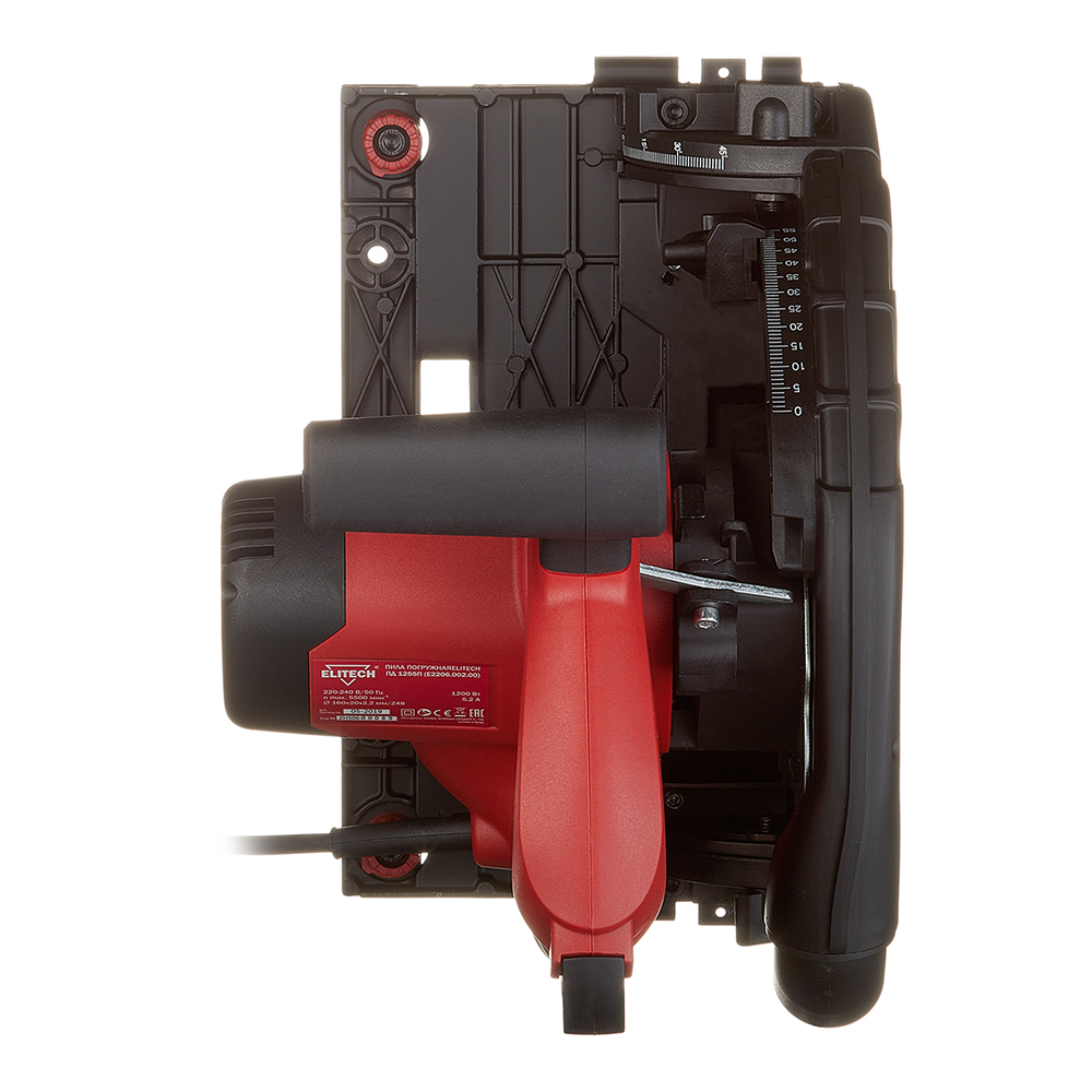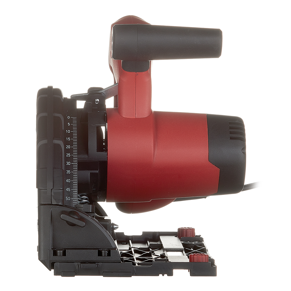 Пила погружная предназначена для точного продольного и поперечного распила листовых материалов (фанеры, ДСП и т.п.) или массива. Врезание пильного диска в материал возможно как с торца, так и вертикально в любом месте заготовки. Пила оснащена регулировкой угла наклона пильного диска от 0° до 45° и регулировкой глубины пиления. Имеет фиксированное положение диска для подрезки и сервисное положение для регулировки расклинивающего ножа и смены пильного диска.rnУгол наклона диска 0° – 45°, регулировка глубины пропила 0-55 мм, калибровка угла наклона диска, патрубок для подключения пылесоса, блокировка курка от случайного включения, литая подошва из алюминиевого сплава, эргономичная рукоятка с резиновыми нескользящими накладками.
