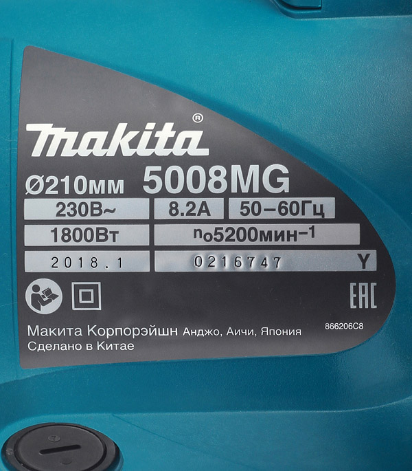 5008MG – модель пилы, 1800 Вт – мощность, 210 мм – диаметр диска.