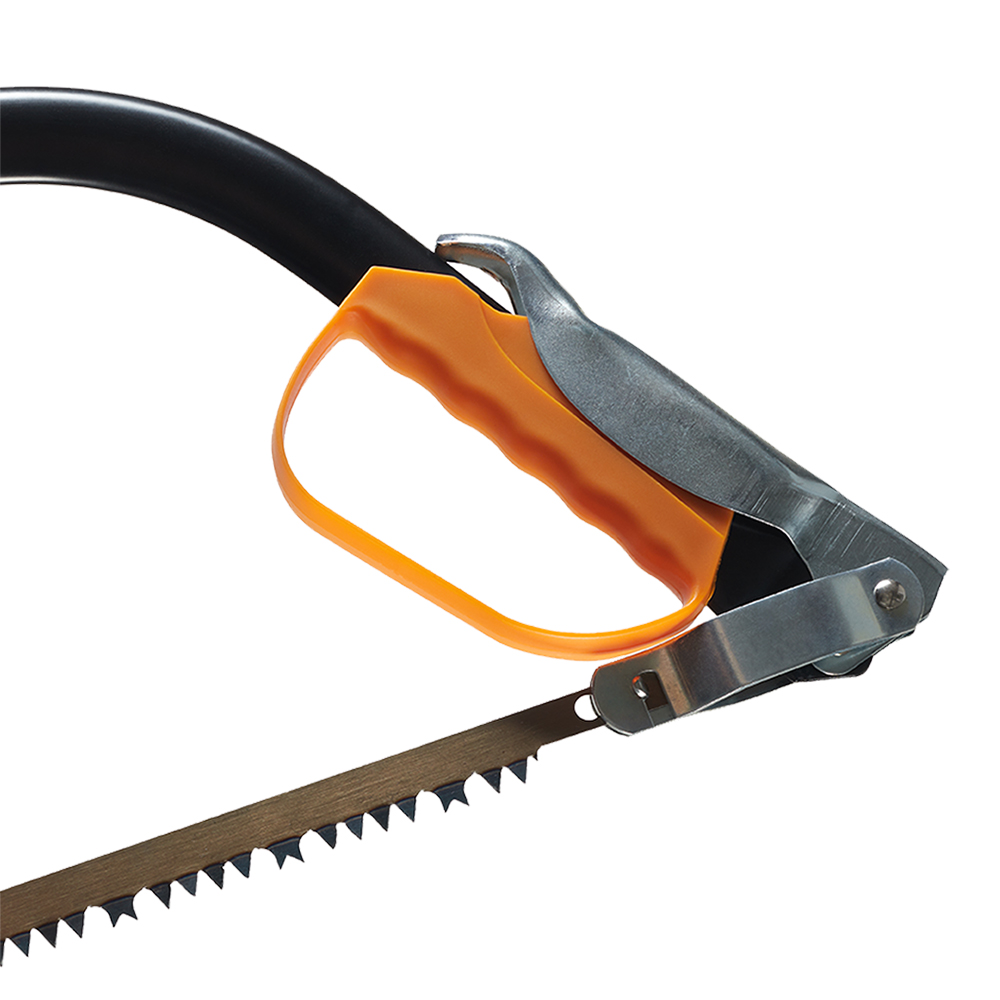 Лучковая пила используется для отпиливания стволов диаметров больше 20 см и толстых ветвей.rn Лезвие пилы изготовлено из закаленной стали, что обеспечивает длительную эксплуатацию, а острые зубья режут, как при направленном вперед, так и при обратном движении, обеспечивая максимальную эффективность работы.rn Прекрасно подходит для срезания небольших стволов и толстых ветвей.rn Изогнутый носик позволяет пилить в труднодоступных позициях.rn Благодаря расположению зубьев в одной плоскости, пилит как при прямом, так и при обратном движении.rn Пластиковый кожух для безопасной транспортировки.