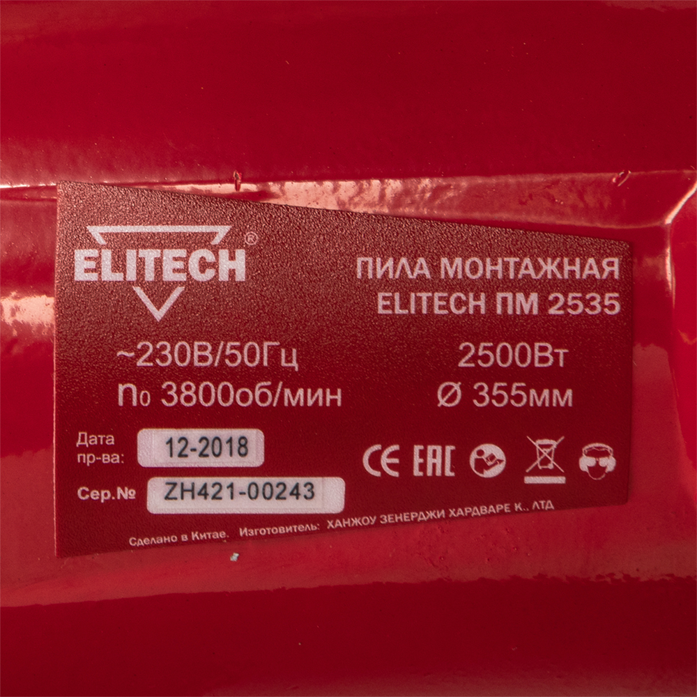Пила монтажная электрическая Elitech ПМ 2535 2500 Вт 355 мм