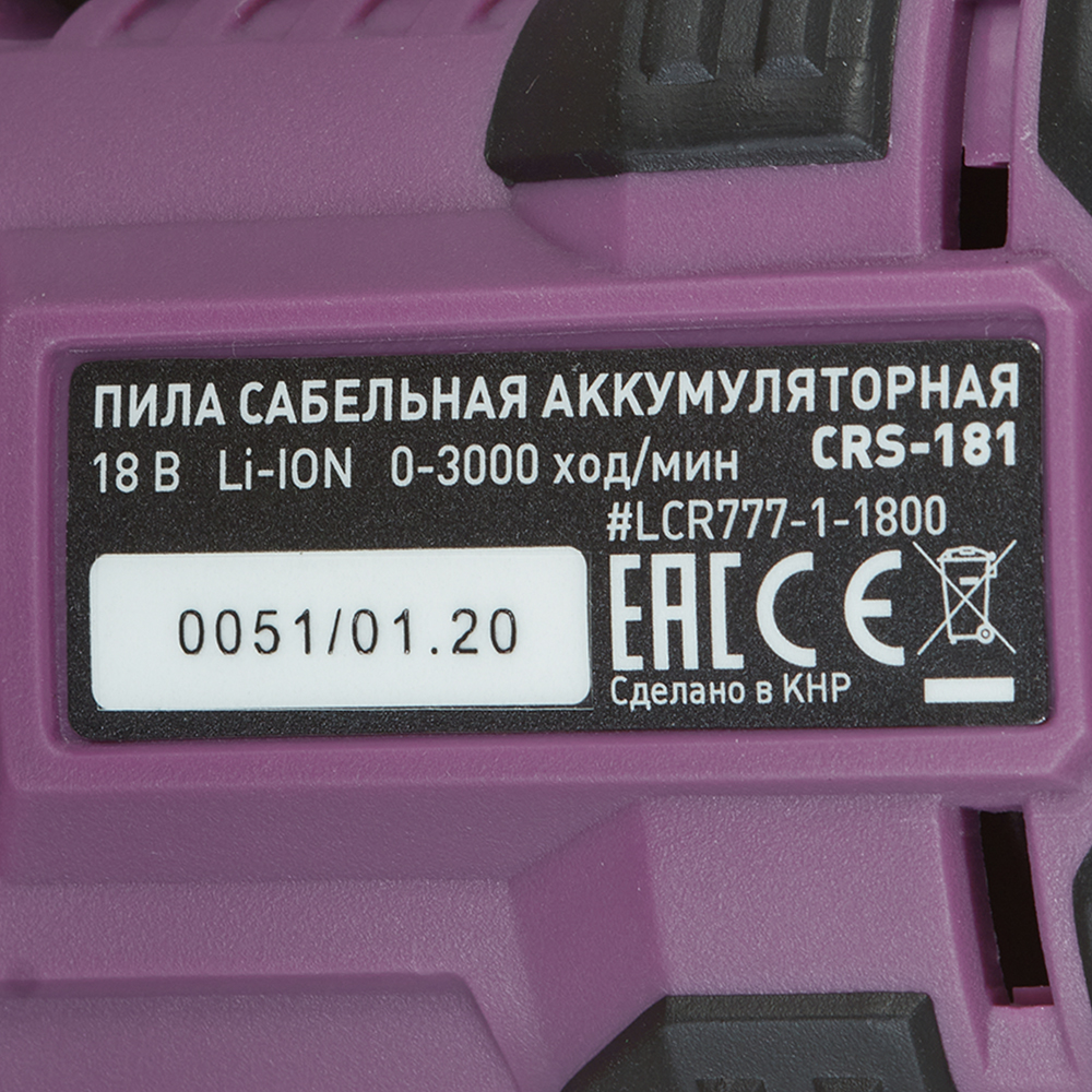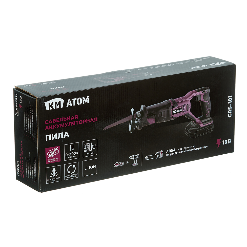 Пила сабельная аккумуляторная КМ АТОМ СRS-181 18В Li-Ion без АКБ и ЗУ
