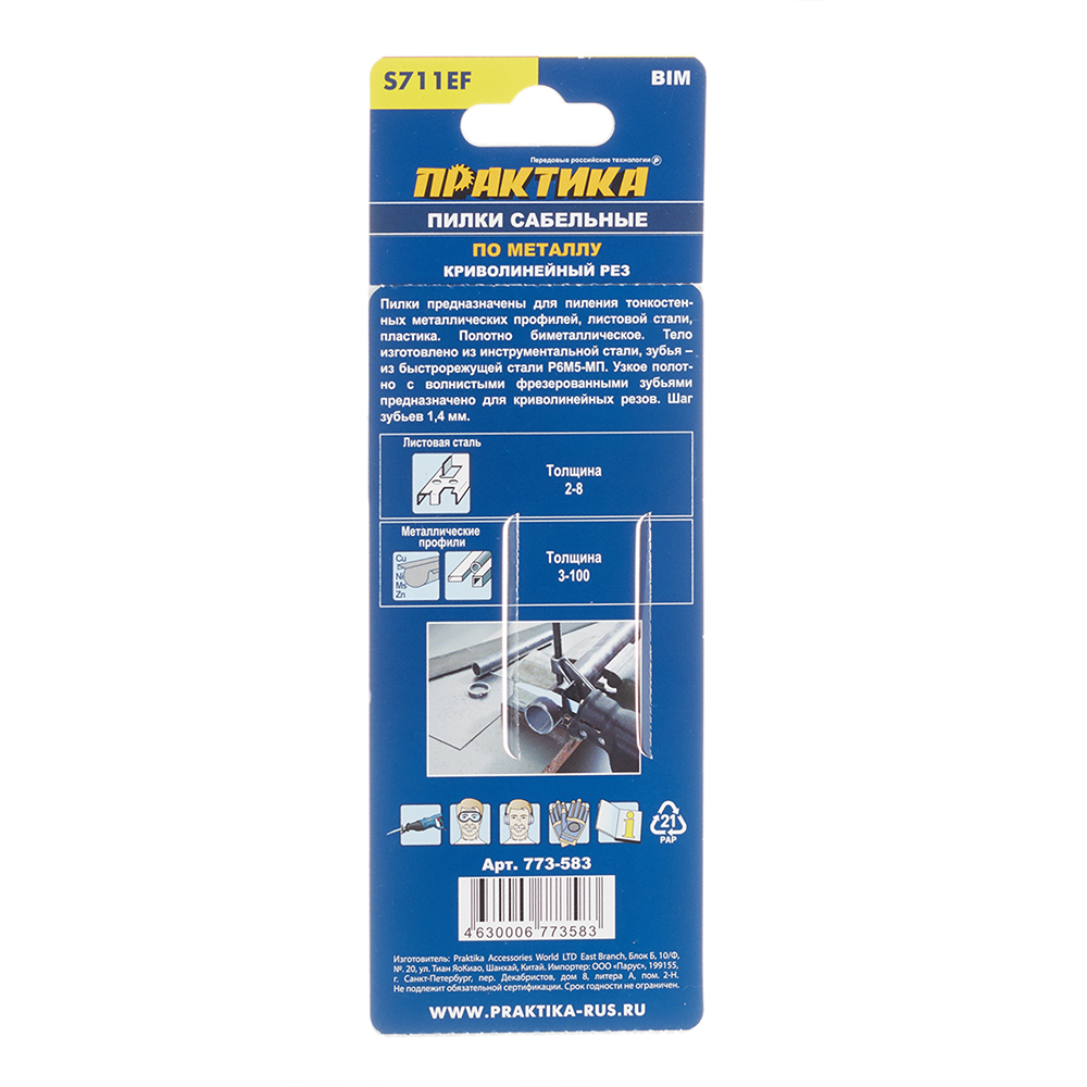 Пилки для сабельной пилы Практика S711EF BIM (773-583) по металлу L130 мм криволинейный (2 шт.)
