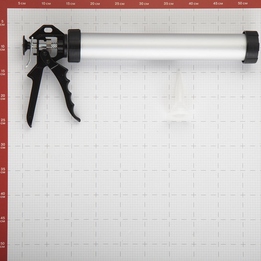 Предназначен для нанесения герметиков на поверхность при выполнении монтажно-строительных или ремонтных работ.rnТруба и ручка сделаны из алюминия, поршень стальной. Насадка сделана из нейлона, носик насадки из полипропилена.rnВозможно использование только с герметиками объёмом 600 мл.