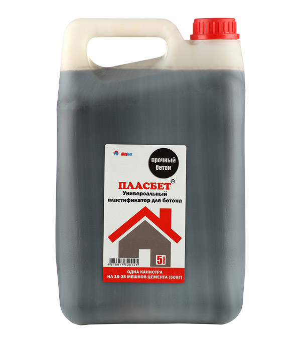 Универсальный пластификатор для увеличения прочности бетона.rnПредназначен в качестве добавки к бетону, железобетону, к бетонным элементам конструкций (в том числе при гидротехнических работах), а также для производства тротуарной плитки, бетонных плит и других бетонных компонентов.rnДобавка пластифицирует бетонную смесь, повышает смачиваемость цемента и дополнительно характеризуется мягким воздухововлекающим действием. rnПри неизменном сочетании вода/цемент Пласбетон способствует изменению консистенции бетонной смеси, делая ее более жидкой, гарантирует увеличение текучести без ухудшения качества бетона.
