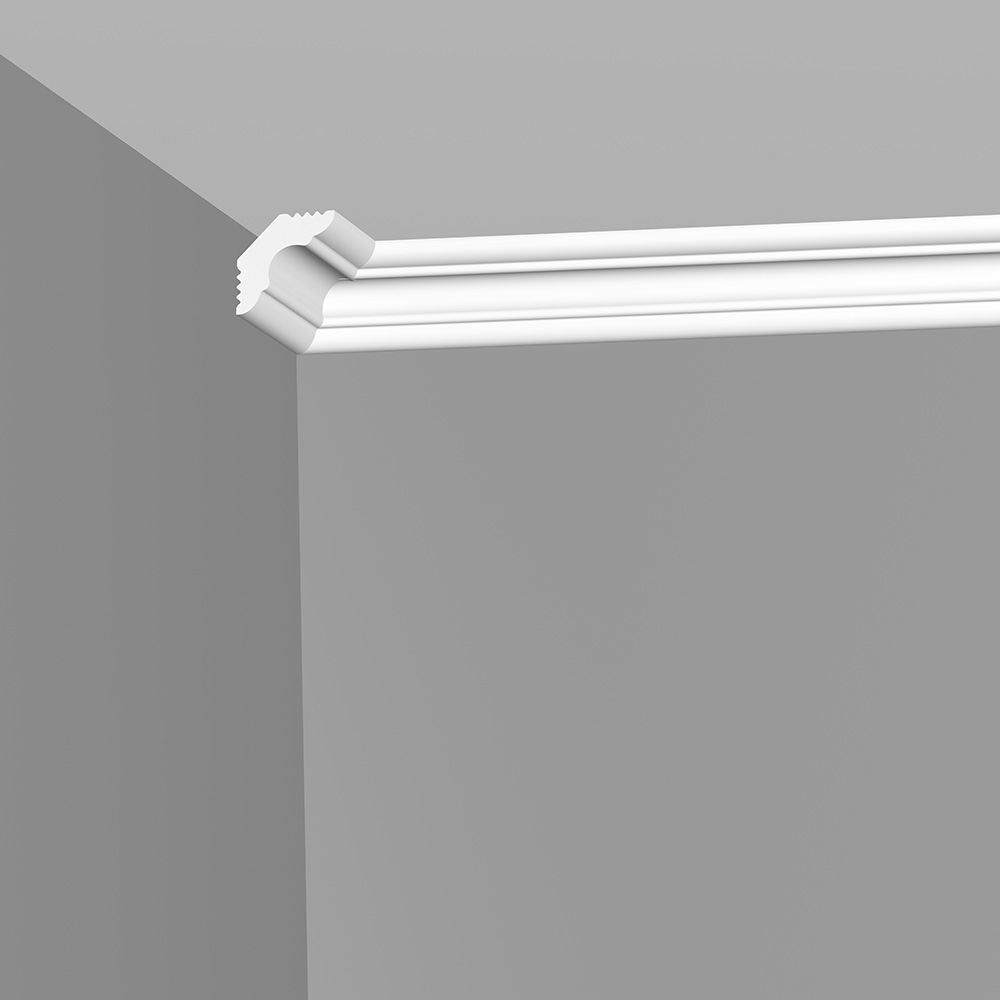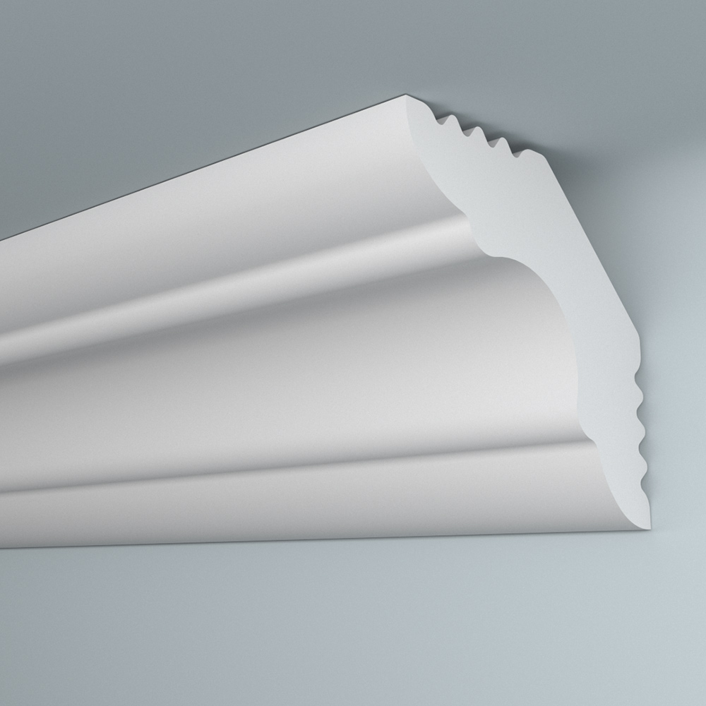Предназначен для внутренней декоративной отделки жилых помещений. Классическая модель плинтуса имеет высокую плотность, гладкую матовую поверхность. Оптимальная плотность потолочного плинтуса обеспечивает однородность структуры, а незначительный вес создает дополнительные удобства при монтаже. Не требует обязательной окраски. Крепится к стене и потолоку при помощи шпаклевки или жидких гвоздей.