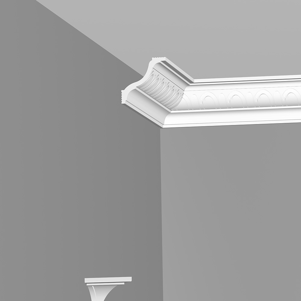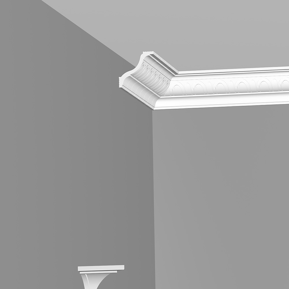 Предназначен для внутренней декоративной отделки жилых помещений. Классическая модель плинтуса имеет высокую плотность, гладкую матовую поверхность. Оптимальная плотность потолочного плинтуса обеспечивает однородность структуры, а незначительный вес создает дополнительные удобства при монтаже. Не требует обязательной окраски. Крепится к стене и потолоку при помощи шпаклевки или жидких гвоздей.