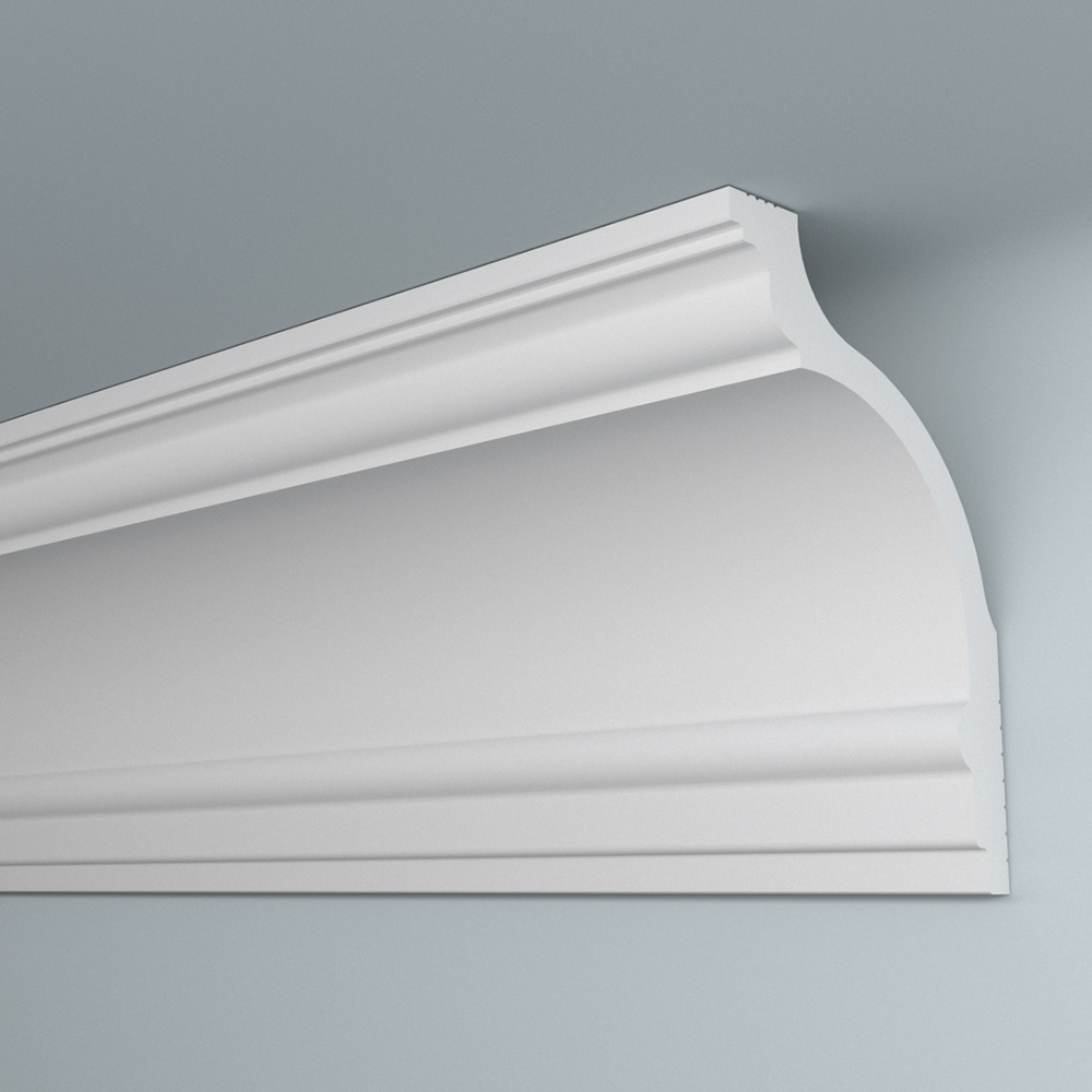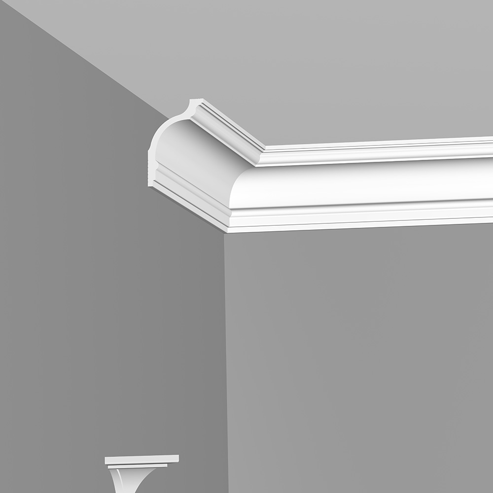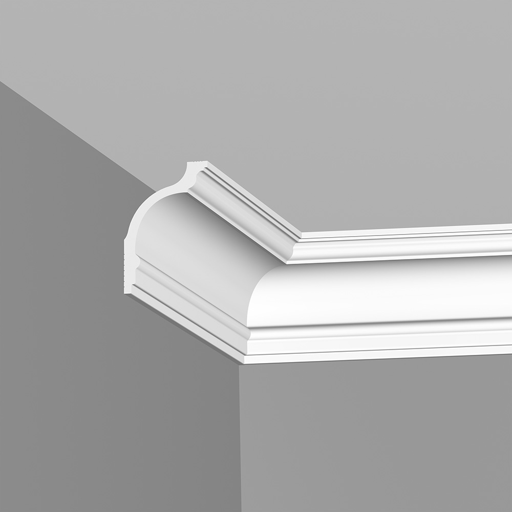 Предназначен для внутренней декоративной отделки жилых помещений. Классическая модель плинтуса имеет высокую плотность, гладкую матовую поверхность. Оптимальная плотность потолочного плинтуса обеспечивает однородность структуры, а незначительный вес создает дополнительные удобства при монтаже. Не требует обязательной окраски. Крепится к стене и потолоку при помощи шпаклевки или жидких гвоздей.