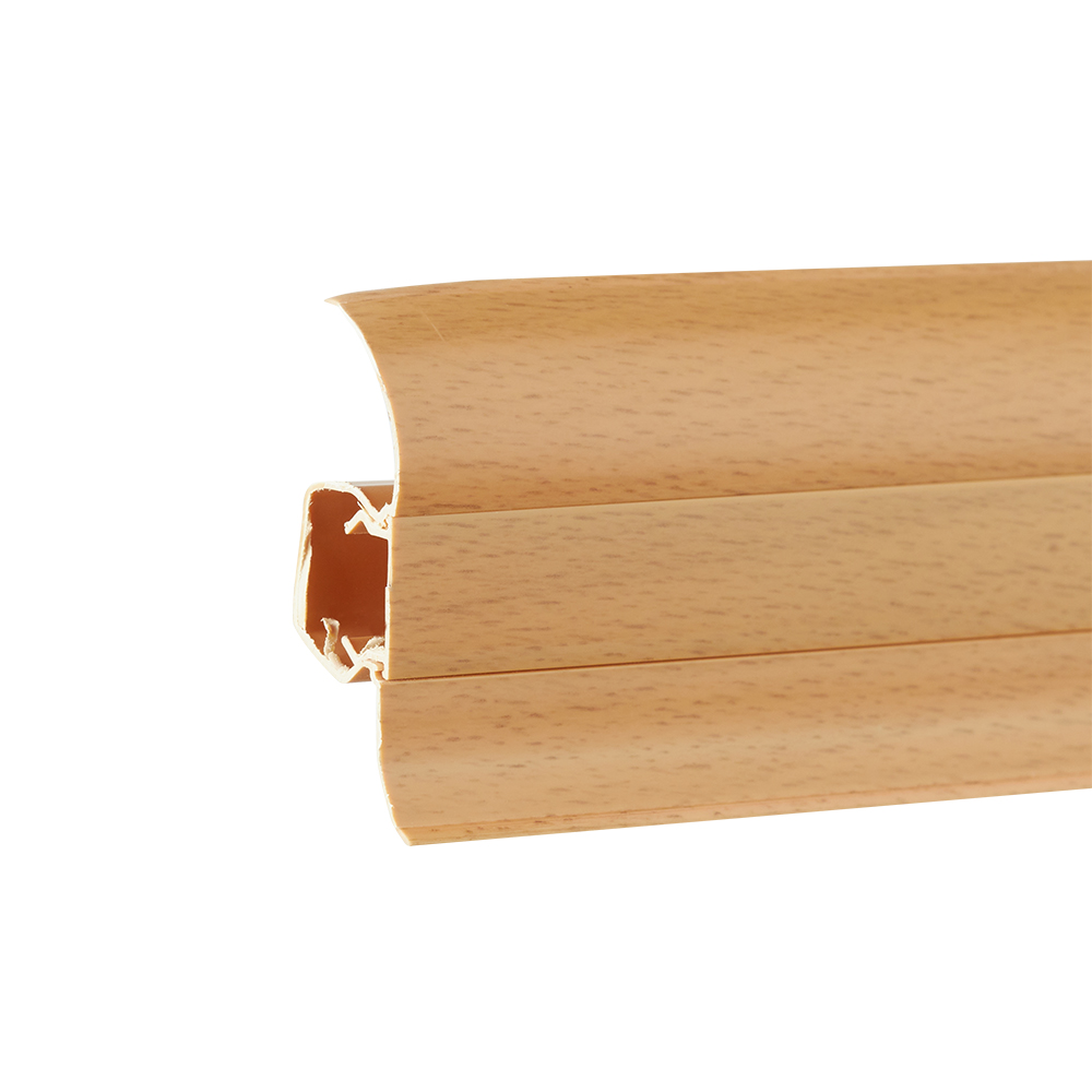 Пластиковый плинтус с кабель-каналом и прорезиненными краями предназначен для помещений как жилого, так и общественного назначения, с дизайном от классики до модерна. Кабель-каналы позволяют спрятать до 15 коммуникационных проводов стандартного размера. Идеально прилегает к полу и стене, благодаря наличию мягкого прорезиненного края. Покрыт лаком, который надолго сохраняет первоначальное цветовое решение и структуру, а так же делает его более устойчевым к механическим повреждениям.rnТаким образом удается достичь фактурного и цветового единства в отделке пола.