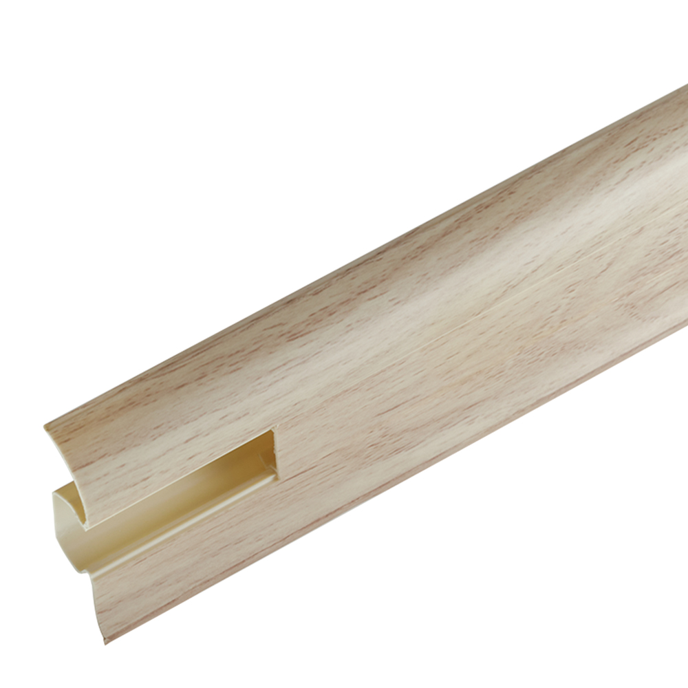 Пластиковый плинтус с кабель-каналом и прорезиненными краями предназначен для помещений как жилого, так и общественного назначения, с дизайном от классики до модерна. Кабель-каналы позволяют спрятать до 15 коммуникационных проводов стандартного размера. Идеально прилегает к полу и стене, благодаря наличию мягкого прорезиненного края. Покрыт лаком, который надолго сохраняет первоначальное цветовое решение и структуру, а так же делает его более устойчевым к механическим повреждениям.rnТаким образом удается достичь фактурного и цветового единства в отделке пола.