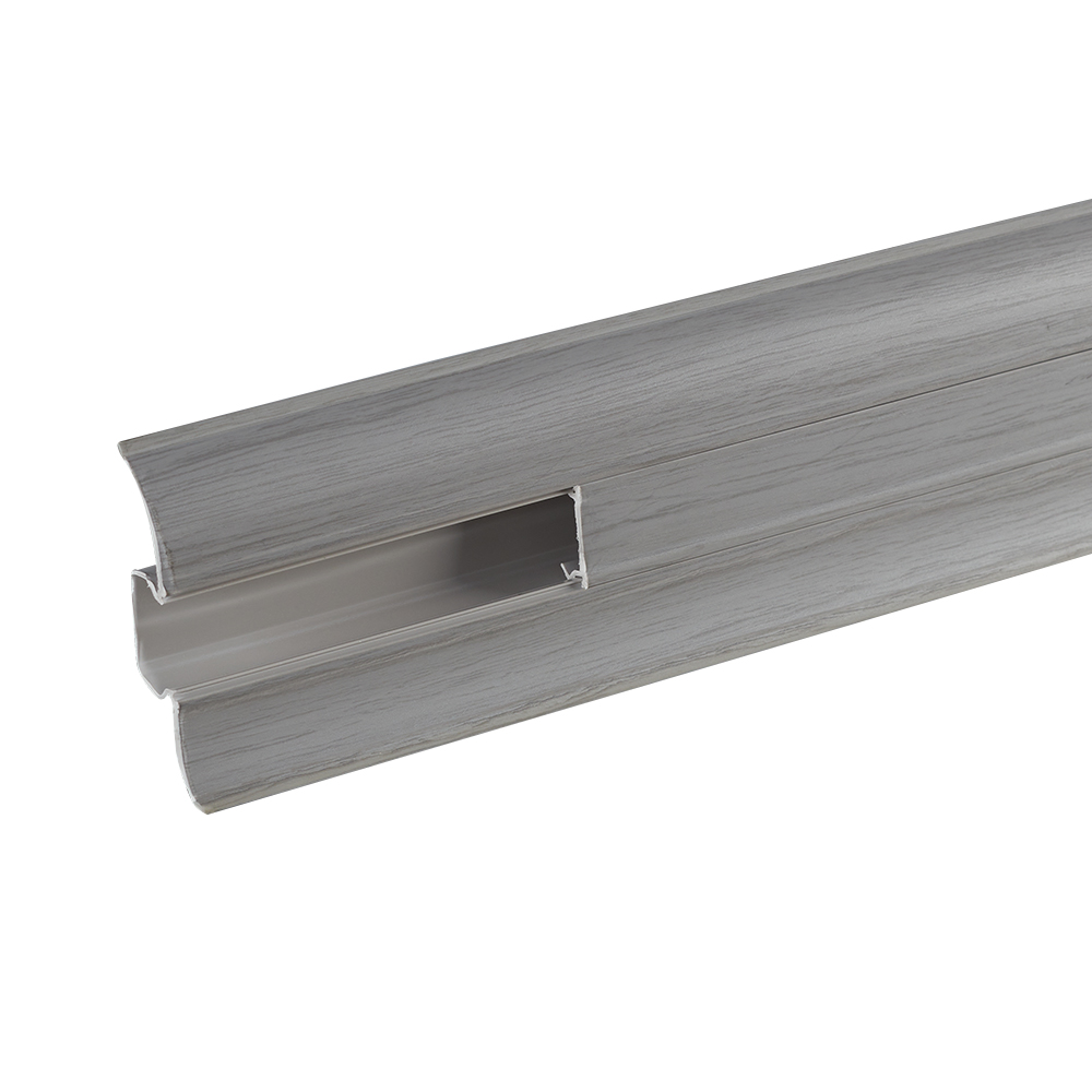Пластиковый плинтус с кабель-каналом и прорезиненными краями предназначен для помещений как жилого, так и общественного назначения, с дизайном от классики до модерна. Кабель-каналы позволяют спрятать до 15 коммуникационных проводов стандартного размера. Идеально прилегает к полу и стене, благодаря наличию мягкого прорезиненного края. Покрыт лаком, который надолго сохраняет первоначальное цветовое решение и структуру, а так же делает его более устойчевым к механическим повреждениям.rnТаким образом удается достичь фактурного и цветового единства в отделке пола.