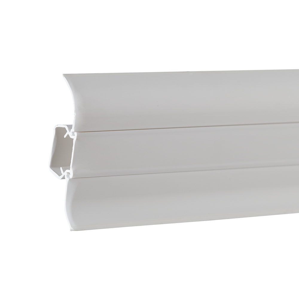 Пластиковый плинтус с кабель-каналом и прорезиненными краями предназначен для помещений как жилого, так и общественного назначения, с дизайном от классики до модерна. Кабель-каналы позволяют спрятать до 15 коммуникационных проводов стандартного размера. Идеально прилегает к полу и стене, благодаря наличию мягкого прорезиненного края. Покрыт лаком, который надолго сохраняет первоначальное цветовое решение и структуру, а так же делает его более устойчевым к механическим повреждениям.rnТаким образом удается достичь фактурного и цветового единства в отделке пола.