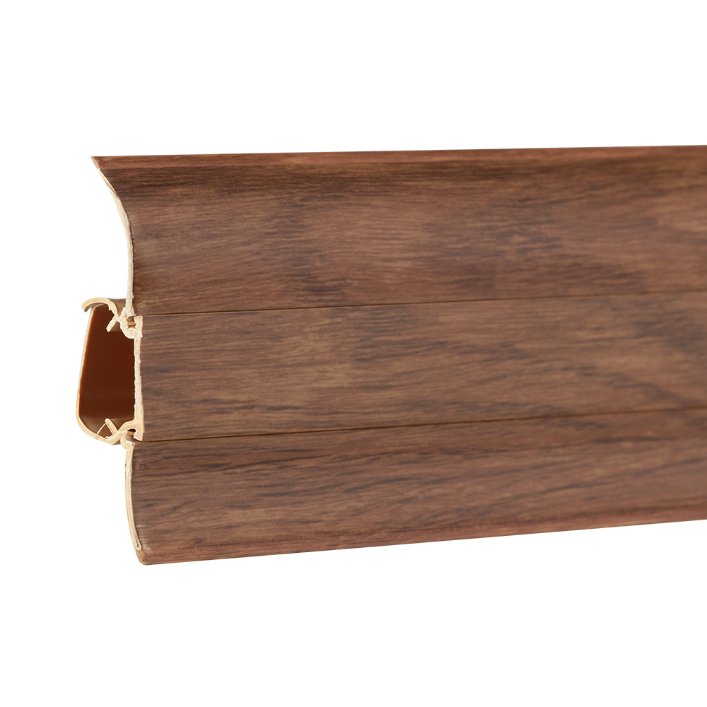 Пластиковый плинтус с кабель-каналом и прорезиненными краями предназначен для помещений как жилого, так и общественного назначения, с дизайном от классики до модерна. Кабель-каналы позволяют спрятать до 15 коммуникационных проводов стандартного размера. Идеально прилегает к полу и стене, благодаря наличию мягкого прорезиненного края. Покрыт лаком, который надолго сохраняет первоначальное цветовое решение и структуру, а так же делает его более устойчевым к механическим повреждениям.rnТаким образом удается достичь фактурного и цветового единства в отделке пола.