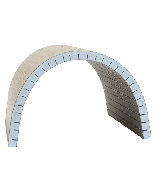 Предназначена для создания цилиндрических конструкций, элементов декора, откосов. Панели созданы способом нанесения несквозных пропилов, которые позволяют сгибать панель в цилиндрическую форму, закрепляя форму клеем, нанесенным в пропилы. Устойчивость к воздействию влаги и распространению плесневого грибка позволяет использовать панель для устройства ограждений ванных комнат и душевых, хаммамов с последующей облицовкой керамической плиткой или пластиком.rnСостоит из экструдированного пенополистирола, армирующей сетки из стекловолокна и покрытия из полимерцементного слоя (с двух сторон), производится по немецкой технологии.rn