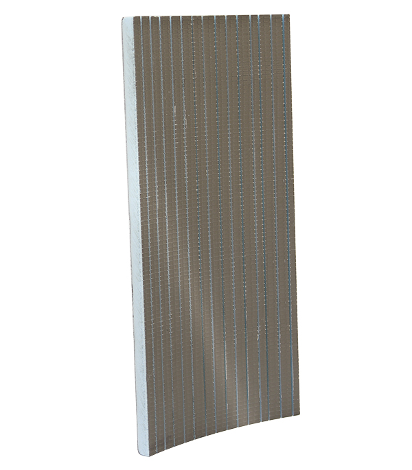 Предназначена для создания цилиндрических конструкций. Панели созданы способом нанесения несквозных пропилов, которые позволяют сгибать панель в цилиндрическую форму, закрепляя форму клеем, нанесенным в пропилы. rnПрименяется для внутренней отделки стен, для утепления наружных стен зданий и сооружений в традиционном, контейнерном и каркасно-щитовом строительстве, утепления фундаментов, выравнивания поверхностей, утепления балконов и лоджий, гидроизоляции и утепления пола, возможно использование плиты в качестве основания под теплый пол, устройства каркасных межкомнатных перегородок, создания конструктивных элементов декора, откосов. Устойчивость к воздействию влаги и распространению плесневого грибка позволяет использовать панель для устройства ограждений ванных комнат и душевых, хаммамов с последующей облицовкой керамической плиткой или пластиком. Состоит из экструдированного пенополистирола, армирующей сетки из стекловолокна и покрытия из полимерцементного слоя (с двух сторон), производится по немецкой технологии.rn