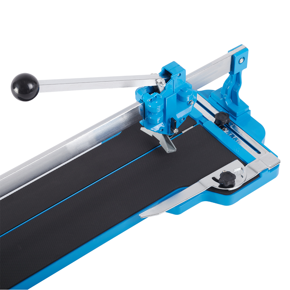 Плиткорез ручной монорельсовый предназначен для резки керамической (кафельной) плитки и плитки из керамогранита размером до 600 мм.rnСкользящая по плоскому стальному монорельсу каретка оснащена девятью шарикоподшипниками, четыре из которых регулируются, что гарантирует ее идеальное перемещение по рельсу и высокое качество реза.rnРабочая каретка снабжена специальным переключателем для перевода режущего элемента (ролика) из рабочего состояния (резки) в рабочее состояние плитколома (для разлома разрезанной плитки).rnМеталлическая линейка с угломером обеспечивает точное соблюдение размеров и позволяет производить рез под углом.rnНаличие литой станины придает конструкции устойчивость и повышенную жесткость, что позволяет резать плитку большой толщины и плитку из керамогранита.rnСтальной плоский ходовой монорельс. Ходовая каретка – 9 подшипников (4 регулируемых).rnГлубина реза – в диапазоне от 5 до 14 мм.