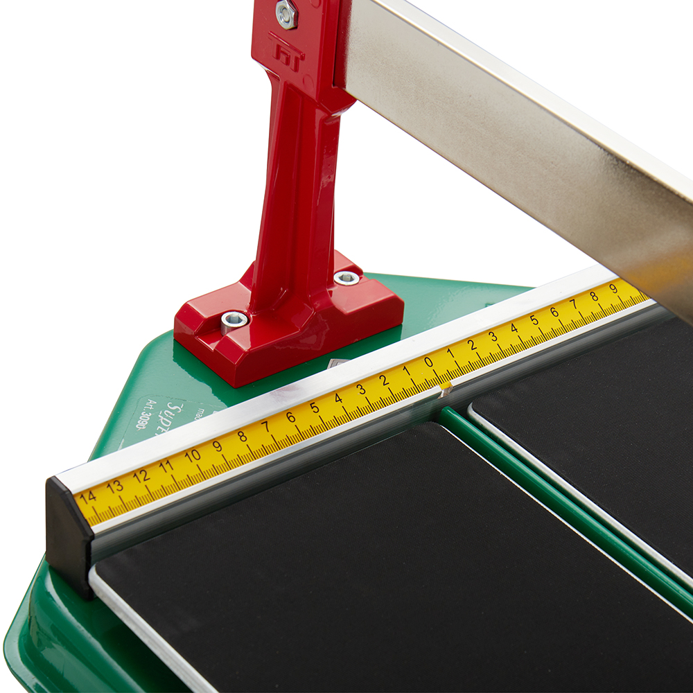 Плиткорез предназначен для разрезания керамической и керамогранитной плитки под любым углом. Оснащен кареткой с девятью шарикоподшипниками. В плиткорезе используется сменный режущий ролик. Глубина реза в диапазоне от 5 до 19 мм.