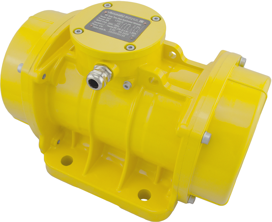 Площадочные вибраторы MVF торговой марки Vibromatic применяются практически во всех областях промышленности , имеют широкий модельный ряд с числом оборотов в минуту 750, 1000, 1500 и 3000 и могут создавать центробежную силу от 0,01 до 25 кН в зависимости от модели вибратора.