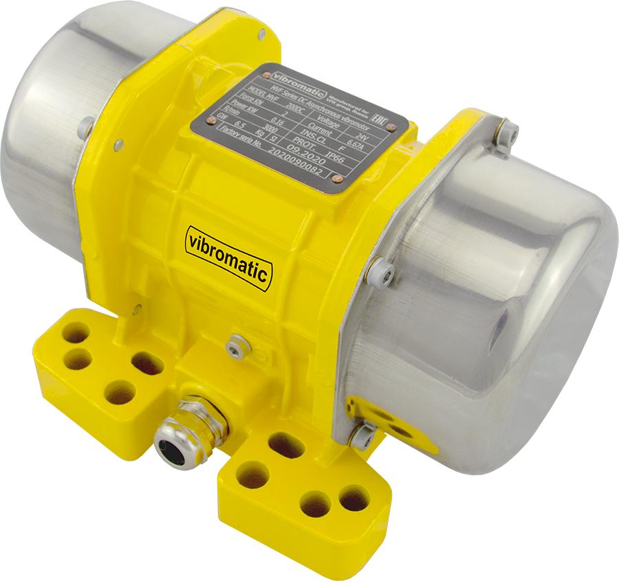 Площадочные вибраторы MVF торговой марки Vibromatic применяются практически во всех областях промышленности , имеют широкий модельный ряд с числом оборотов в минуту 750, 1000, 1500 и 3000 и могут создавать центробежную силу от 0,01 до 25 кН в зависимости от модели вибратора.