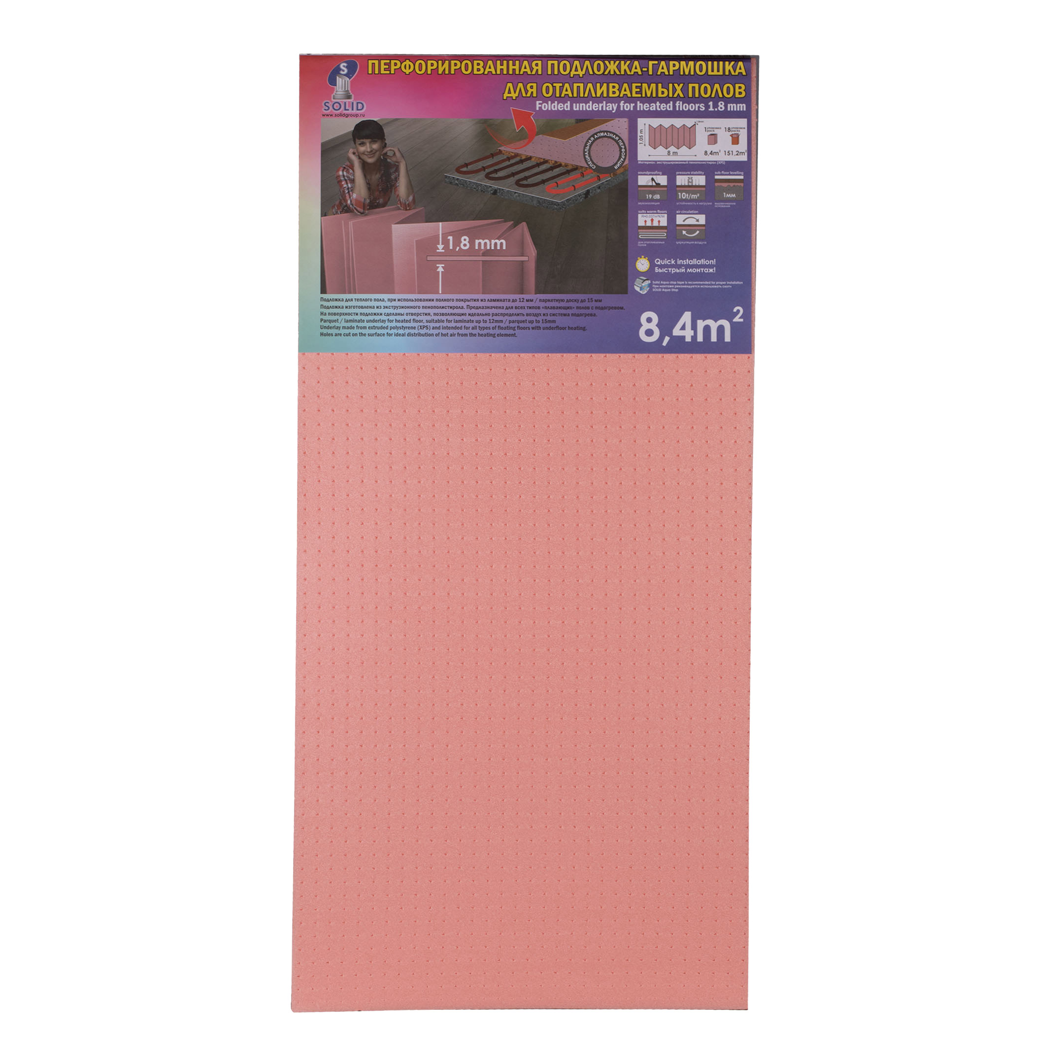 Подложка-гармошка XPS Solid 1,8 мм 1,05х8 м 8,4 кв.м перфорированная для теплого пола