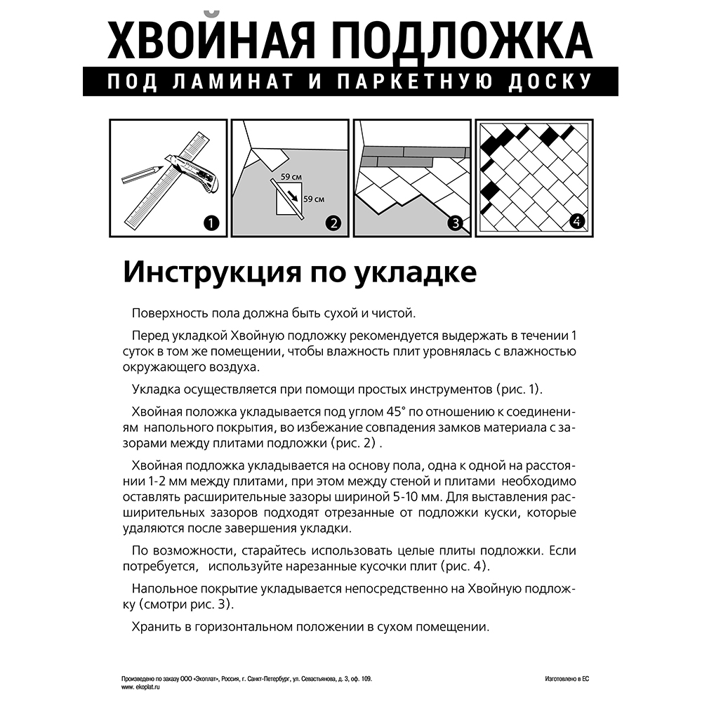 Подложка хвойная 7 мм 0,59х0,79 м 7 кв.м