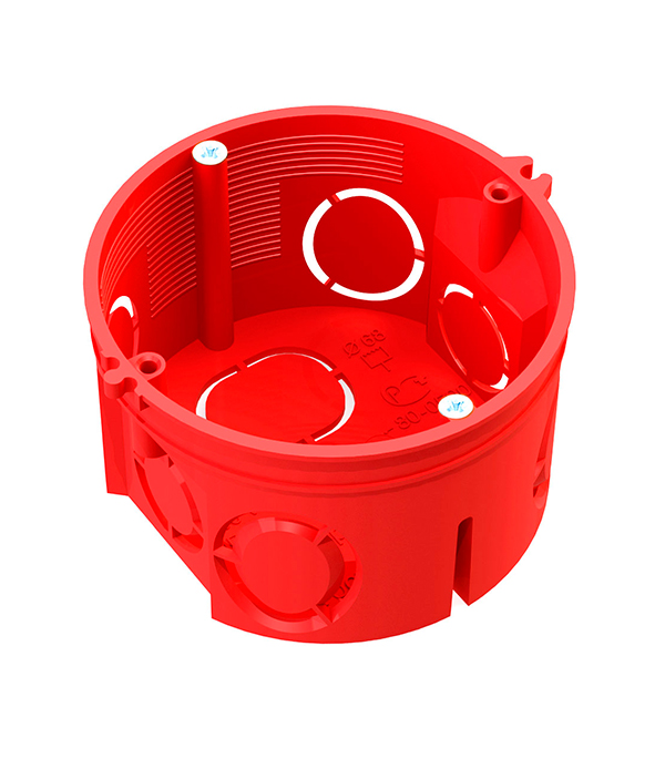 Подрозетник Промрукав (80-0501 С) для бетона d68х42 мм 7 вводов красный IP20 с саморезами безгалогенный