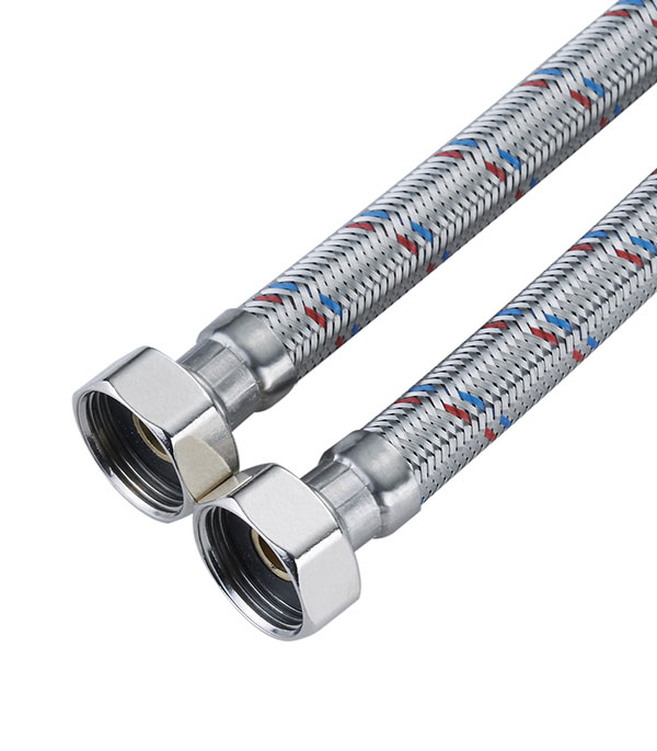 резиновый шланг (EPDM) в оплетке из нержавеющей стали, гайки и штуцер – латунь.