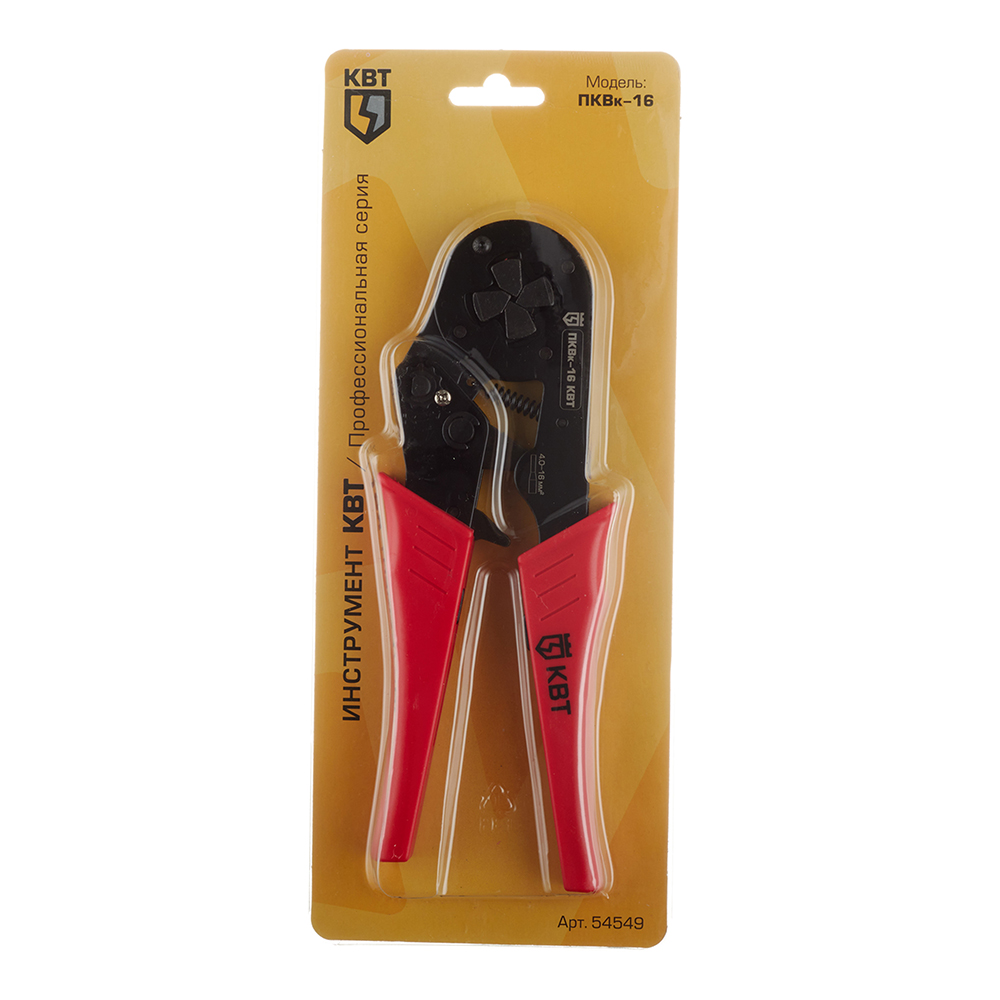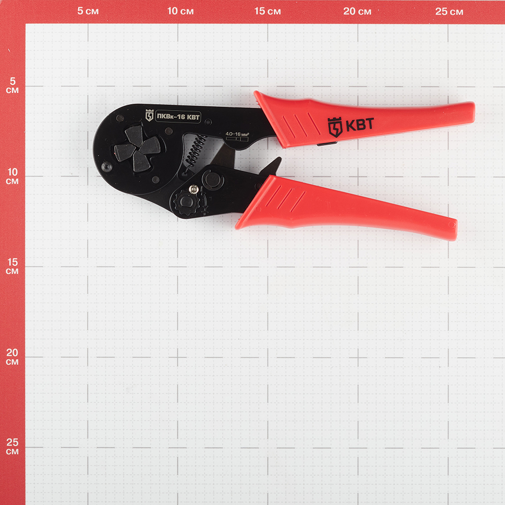 Универсальный инструмент для опрессовки одинарных и двойных втулочных наконечников.rnОдна саморегулирующаяся матрица на все типоразмеры диапазона. Модель ПКВк-16 перекрывает диапазон из 5 типоразмеров.rnИмеет квадратный профиль обжима с рифлением, храповой механизм, гарантирующий полный цикл опрессовки.rnА также регулятор прижимного усилия матриц.