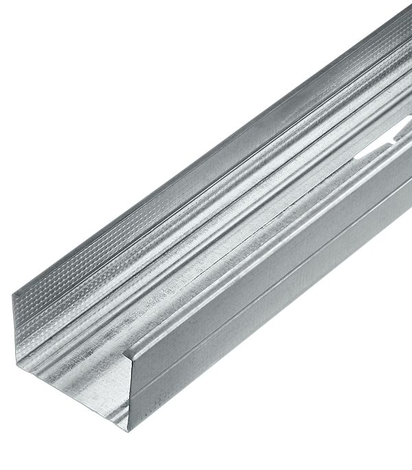 Профиль стоечный имеет С-образную форму. Полки и спинка профиля усилены ребрами жесткости. Отличительной особенностью этих профилей является наличие технологических отверстий в спинках для прокладки различных коммуникаций. Профиль стоечный устанавливается между направляющими пола и потолка и крепится к ним саморезами клопамиили с помощью просекателя для гипсокартона.
