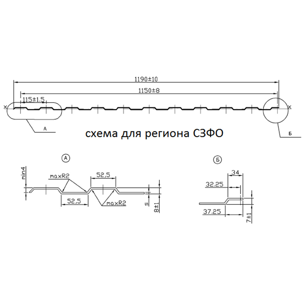- При горизонтальном расположении листов горизонтальный нахлест равен 1 боковой волне листа, вертикальный – ~100 мм.