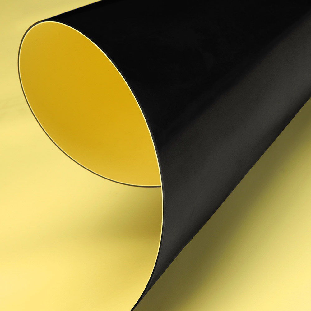 Гидроизоляционный рулонный полимерный неармированный материал с сигнальным слоем. Производится путем формирования в единое полотно пластической массы, полученной в результате экструдирования поливинилхлорида (ПВХ), наполнителей и технологических добавок. Лицевая поверхность мембраны жёлтого цвета, тыльная поверхность – чёрного. Сигнальный слой жёлтого цвета на лицевой поверхности мембраны позволяет обнаружить повреждения гидроизоляции, в случае их возникновения при монтаже. Материала с рекомендуемой температурой применения от -10 до +15°С;