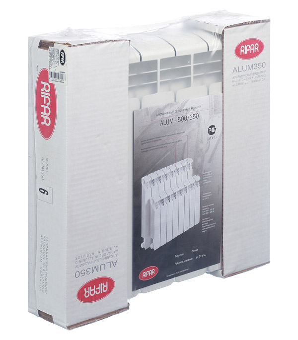 Радиатор алюминиевый Rifar Alum 350 мм 6 секций 1боковое подключение белый