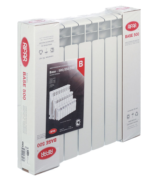 Предназначен для отопления жилых, общественных, административных и производственных зданий как с замкнутыми, так и с открытыми системами отопления.rnИспользуется для отопления больших и слабо утепленных помещений за счет большей теплоотдачи секции.rnИмеет два присоединительных выхода с внутренней правой резьбой 1(25 мм) с одной стороны и два присоединительных выхода с внутренней левой резьбой 1(25 мм) с другой стороны.rnВозможно изменение количества секций. Для этого может понадобиться: Ниппель межсекционный для скрутки радиаторов 1и Прокладка для радиатора межсекционная паронитовая.rnВнимание! Монтажный комплект (заглушки, крепления, кран Маевского) в комплектацию не входят и приобретаются отдельно.rnВ качестве теплоносителя для модели RIFAR Base использовать только специально подготовленную воду согласно п. 4.8 СО 153-34.20.501-2003 Правила технической эксплуатации электрических станций и сетей Российской Федерации.
