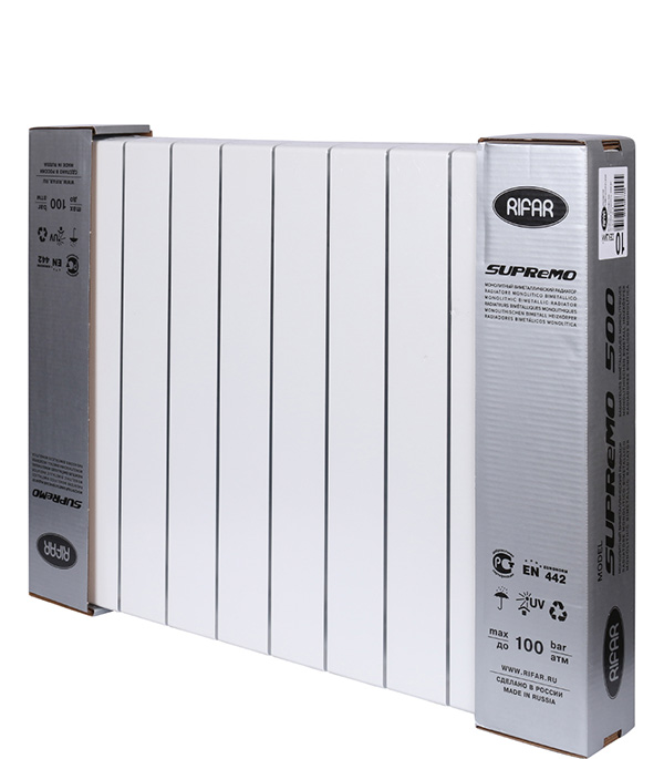 Радиатор биметаллический Rifar Supremo 500 мм 10 секций 3/4боковое подключение белый