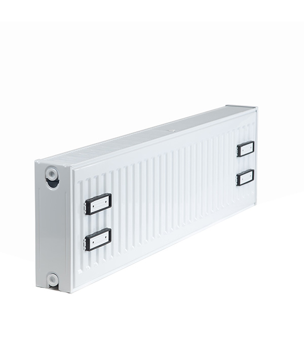 Предназначен для отопления жилых, общественных, административных и производственных зданий с замкнутыми системами отопления. Имеет по 2 присоединительных выхода с внутренней резьбой 1/2(16 мм) как справа, так и слева. Необходимая мощность радиатора определяется следующим образом: 100 Вт на метр квадратный (если помещение имеет высоту потолков до 2,7 м), 40 Вт на метр кубический (если помещение имеет высоту потолков более 2,7 м). Радиаторы типа 22 с боковым подключением востребованы и популярны в силу своей универсальности. Модели этого типа состоят из: двух стальных панелей; двух встроенных между панелями конвекторов; воздуховыпускной решетки; боковых декоративных панелей. Способ подключения – боковое, пригодное как для однотрубных, так и для двухтрубных систем. rnОтсутствие монтажных скоб на задней стенке, позволяет монтировать радиатор любой стороной. Радиатор устанавливается на два кронштейна. Во время установки батарею можно повернуть любой стороной, поскольку он универсален.