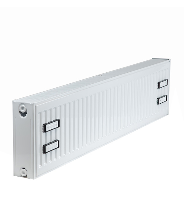 Предназначен для отопления жилых, общественных, административных и производственных зданий с замкнутыми системами отопления. Имеет по 2 присоединительных выхода с внутренней резьбой 1/2(16 мм) как справа, так и слева. Необходимая мощность радиатора определяется следующим образом: 100 Вт на метр квадратный (если помещение имеет высоту потолков до 2,7 м), 40 Вт на метр кубический (если помещение имеет высоту потолков более 2,7 м). Радиаторы типа 22 с боковым подключением востребованы и популярны в силу своей универсальности. Модели этого типа состоят из: двух стальных панелей; двух встроенных между панелями конвекторов; воздуховыпускной решетки; боковых декоративных панелей. Способ подключения – боковое, пригодное как для однотрубных, так и для двухтрубных систем. rnОтсутствие монтажных скоб на задней стенке, позволяет монтировать радиатор любой стороной. Радиатор устанавливается на два кронштейна. Во время установки батарею можно повернуть любой стороной, поскольку он универсален.