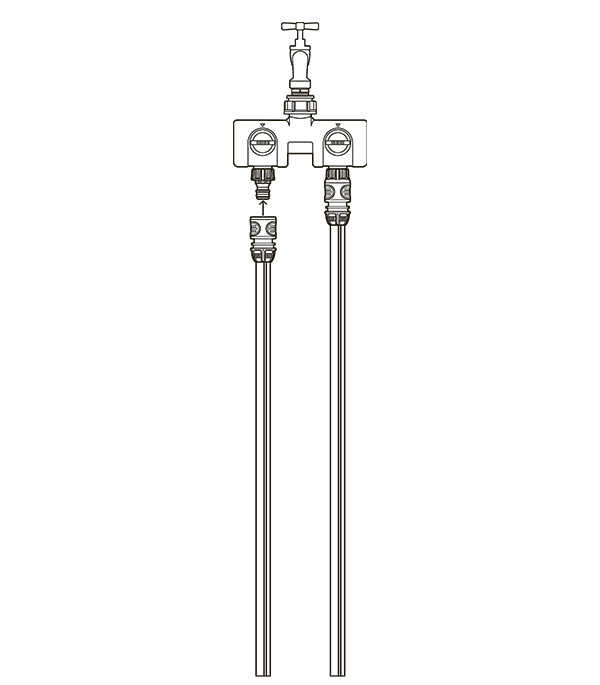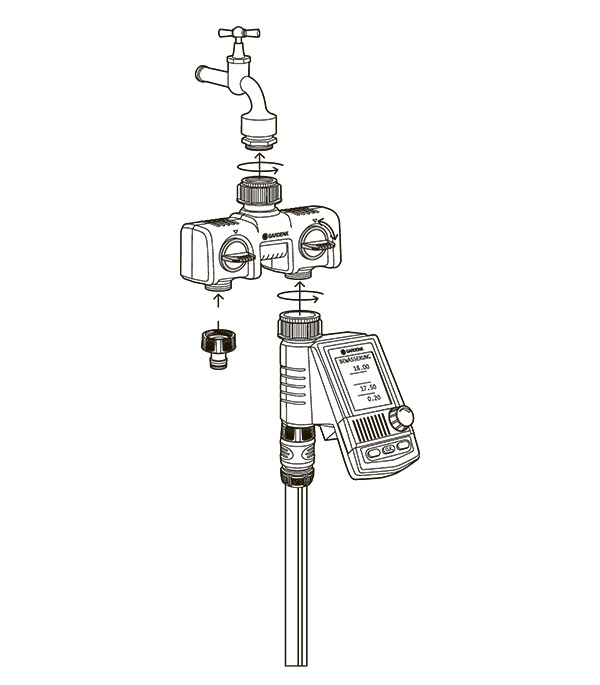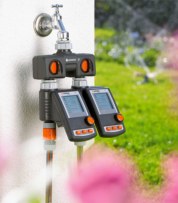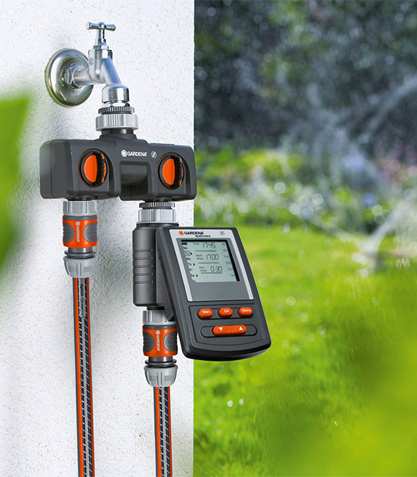 Распределитель 2-х канальный GARDENA позволяет одновременно подключать два устройства к одному крану.