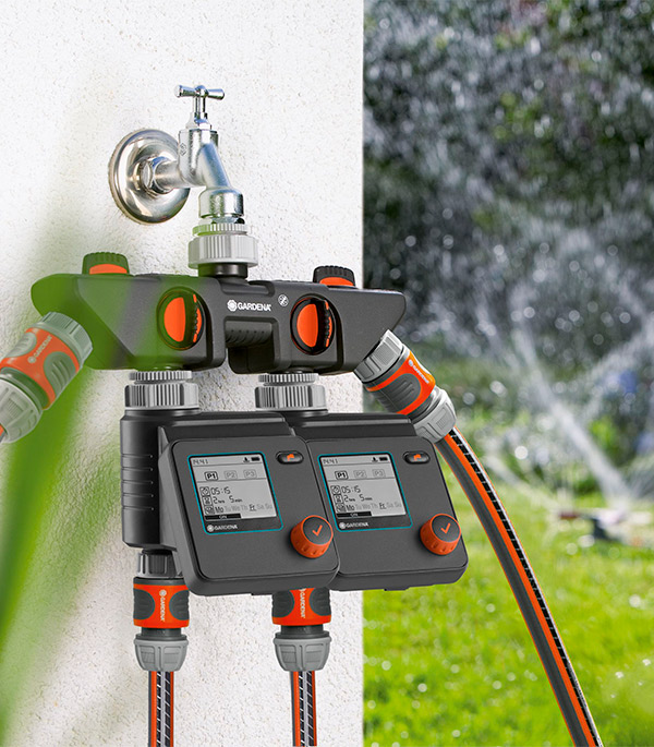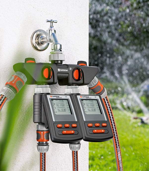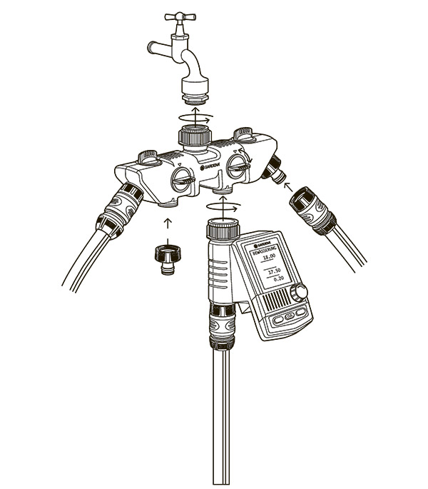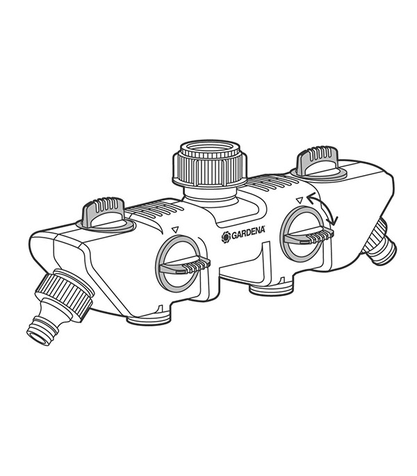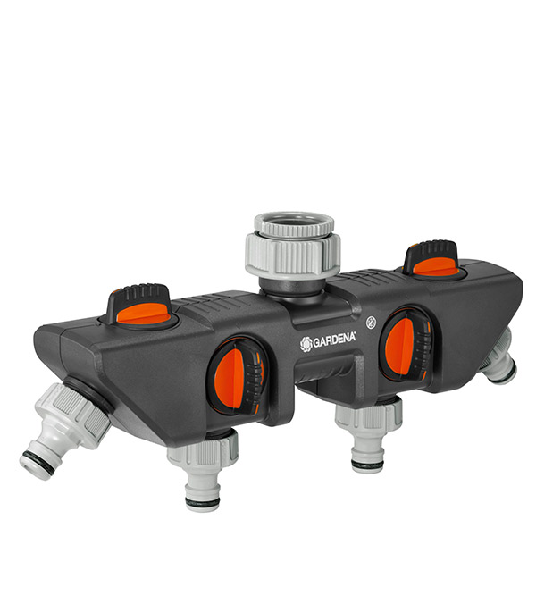 Распределитель 4-х канальный GARDENA позволяет одновременно подключать несколько устройств к одному крану.