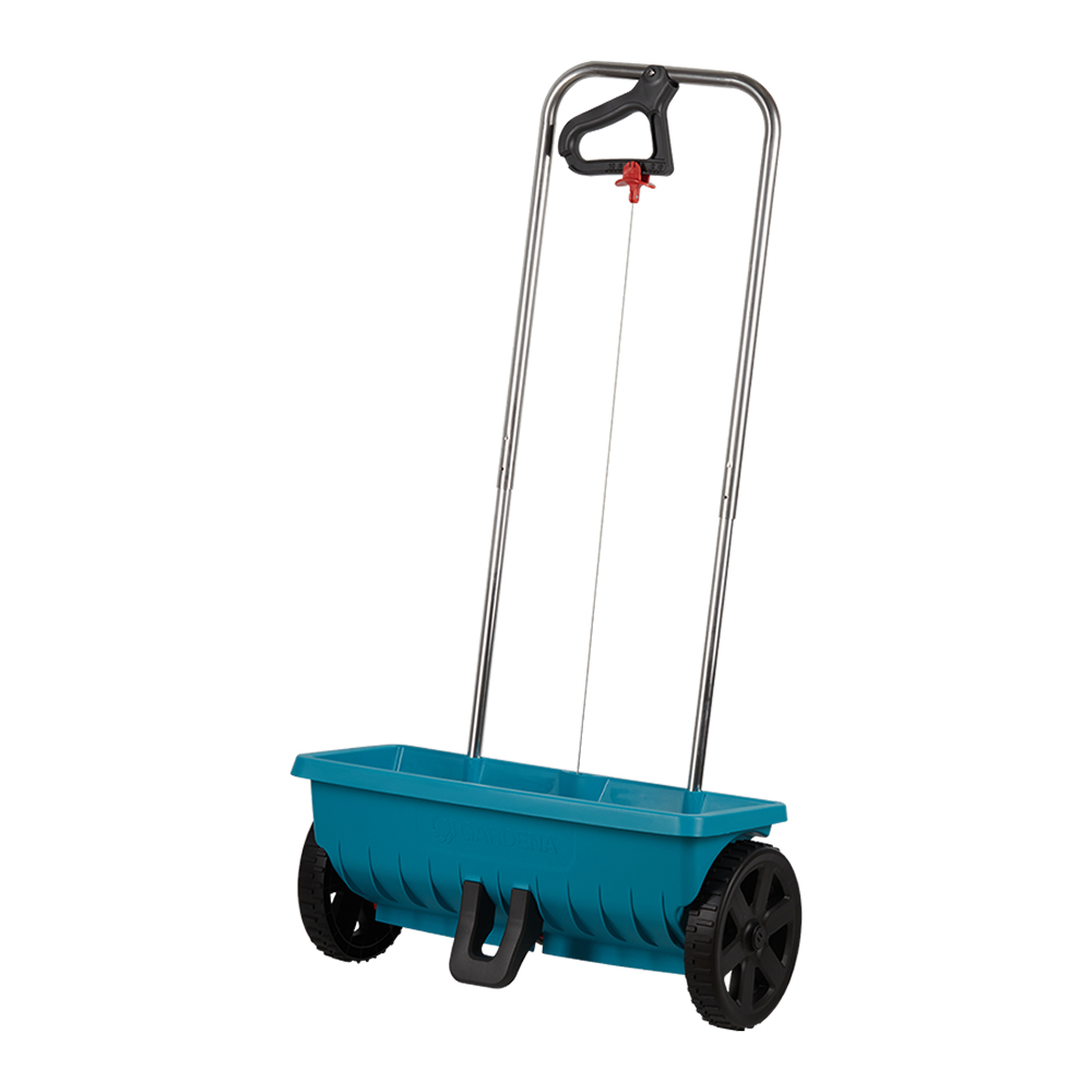 Ручная разбрасыватель-сеялка L идеально подходит для распределения удобрений, семян и технической соли на участках средних размеров. Расход материала регулируется непосредственно на эргономичной рукоятке. Крышка имеет уплотнительную кромку, которая плотно закрывает контейнер и предотвращает утечку, когда устройство неподвижно, во время наполнения или после использования. Специальный разбрасывающий цилиндр разбрасывателя-сеялки L равномерно распределяет сыпучие материалы точно по той поверхности, где необходимо. Разбрасыватель-селяку легко можно помыть водой после использования.rnРазбрасыватель-сеялка L обеспечивает особо равномерное распределение материалов различных размеров: удобрения, семена, гранулят, песок и дорожная соль. Это позволяет применять его круглый год как летом, так и зимой.rnФункция открытия / закрытия на рукоятке позволяет точно регулировать дозировку распространяемого материала.Расходуемое количество можно также регулировать на рукоятке, не напрягая спину или не наклоняясь.rnСпециальный ограничитель из мягкого пластика обеспечивает особо равномерное распределение материалов. Двухкомпонентная крышка закрывает разбрасыватель максимально плотно, и после использования материал не просыпается.rnБольшие профилированные колеса обеспечивают надежное сцепление и оптимальную тягу на любой поверхности.rnРазбрасыватель-сеялка изготовлена из коррозионно-стойкого материала и может быть легко очищена водой.