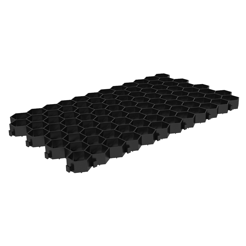 Газонная решетка предназначена для устройства парковочных мест для легковых автомобилей на газоне с сохранением травяного покрова, так называемой эко-парковки, а также для создания пешеходных невытаптываемых газонов в парках и других общественных местах.rnГазонная решетка имеет ячеистую структуру, где развивается корневая система травы. Ребра жесткости газонной решетки принимают на себя нагрузку от колес автомобиля , сохраняя тем самым корневую систему травы. Ребра жесткости так же не дают образоваться колее, препятствуют вытаптыванию газона, сохраняя в ячейке условия для роста травы.Черная газонная решетка незаметна в грунте, поэтому газон имеет более естественный вид, в отличие от ситуации, когда применяется зеленая газонная решетка. Зеленая газонная решетка не сливается с травой, как принято считать, а просматривается под травой: в грунте видна зеленая сетка ребер жесткости газонной решетки. Поэтому для создания естественного вида газона рекомендовано применение черной газонной решетки.rnВнимание! Оттенок может меняться от партии к партии.