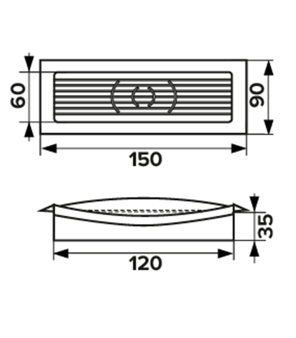 Решетка вентиляционная накладная пластиковая для плоских воздуховодов 60х120 мм
