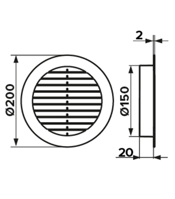 Решетка вентиляционная наружная ERA с фланцем d150 мм круглая пластиковая d200 мм